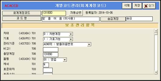 ±Þ¿©Ç׸ñ ¸¸µé¶§ ¿¬°á ȸ°è°èÁ¤À» ãÀ» ¶§ ½±°Ô ¼³Á¤ÇϱâÀ§Çؼ ±Þ¿©°ü·Ã °èÁ¤¸¸ Ç¥½ÃµË´Ï´Ù. ÄÚµåÁ¾ÇÕ°ü¸® (´ÜÃàŰF2) ´ÜÃàŰF2۸¦ ´©¸£¸é ÄÚµåÁ¾ÇÕ°ü¸® ȸéÀÌ Ç¥½ÃµË´Ï´Ù. À̰÷¿¡¼µµ °èÁ¤À»