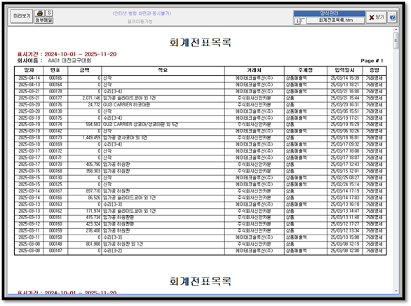 ¼±ÅÃÇÏ¿© ¼öÁ¤, »èÁ¦, Á¶È¸, ÀμâÇÒ ¼ö ÀÖÀ¸¸ç, ÀüÇ¥ º¹¼ö°³·ê ¼±Åà ÈÄ »èÁ¦, Á¶È¸, Àμ⸦ ½Ç½ÃÇÒ ¼ö ÀÖ½À´Ï´Ù. ÀüÇ¥ Ç¥½Ã¼ø¼´Â ÃÖ½ÅÀÏÀÚ¼ø ȤÀº °ú°ÅÀÏÀÚ¼øÀ¸·Î ÁöÁ¤ °¡´ÉÇÕ´Ï´Ù.